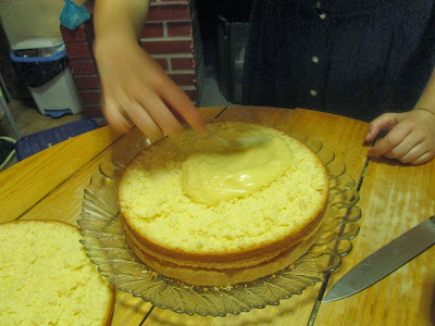 Rechear a segunda camada com 1/3 do creme de farinha maizena